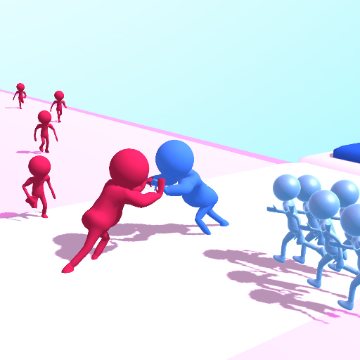 Tap and hold to spawn as many little people as you can, to help your character become bigger and push your enemy!