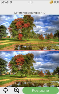 Look at two pictures and try to spot 10 differences - like a hidden objects, but instead of items you should find differences.