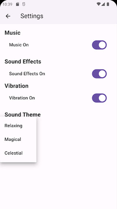 Choose from 3 audio themes to chose from to make your game experience more relaxing.