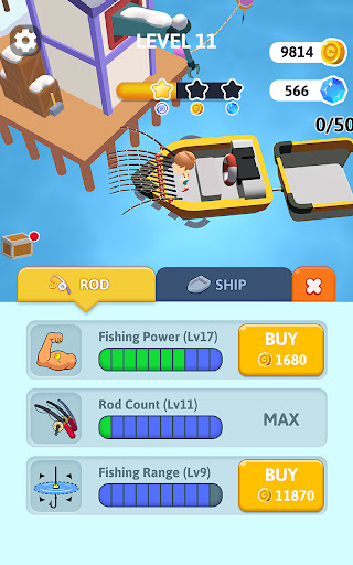 Catch fish and sell them to buy new facilities to upgrade your boat.