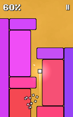 Set in a colorful retro universe, you ride smoothly on vertical walls and tap the screen to switch sides as you jump over gaps and dodge tricky obstacles.