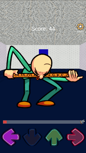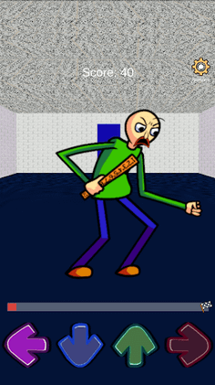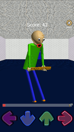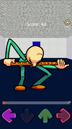 Baldi Mod Test FNF has a simple and understandable control - press the arrows on the screen of your device and Baldi will move and make a sound. To make you even more fun, after each press, you will be charged points and music will sound. By the way, in FNF Baldi Mod Test you can turn off the music and listen to the voice of only the main character.