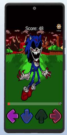 Sonik EXE Mod Tets FNF has a simple and intuitive control - click on the arrows on the screen of your device and Sonik will move and make a sound. To make it even more fun for you, after each click you will be awarded points and music will sound in the background. By the way, in FNF Sonik EXE Test you can turn off the music and listen to the voice of the main character only.