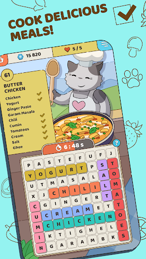 So, what are you waiting for? Let your inner chef roam free, satisfy your appetite for both words and food with Food Words: Cooking Cat Puzzle. Join now and indulge in a delightful gameplay experience!