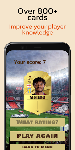 Ready to challenge? Over 800 player cards. Guess the player's rating, earn points and get into the table of 100 best players. You have 100 seconds, 3 wrong answers and move on to the next card. Can you be the best?