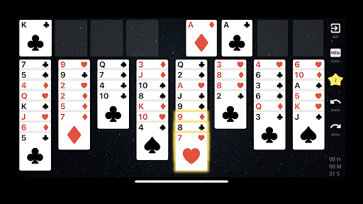 The goal is to stack up the four card sets on home cells in ascending order from A to K.