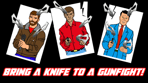 Some of the targets carry weapons and some are innocents. Throw your knives accurately and try not to hit innocents.