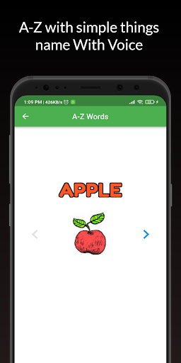 Basic ABC Game is very smooth and kid friendly designed Game And this thing make our game more useful for kids. Basically, it works in such a way that, when a kid touch anything on the screen it will speak up with the name of that thing. Let take an example, when a kid tap on any color or image, there will be a voice that describes the name of that image. For example when kid touch A for Apple, it will speak up APPLE.
