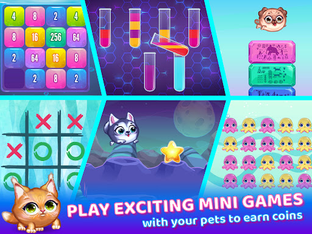 Get coins for completing the games and spend them on your favorite pets and beautiful color outfits for your characters!