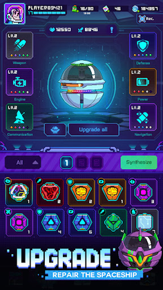 This game offers 1000+ unique types of mutant species appearing on the same screen for you to defeat. Play with just one hand while using brief pauses in between each wave of assaults to dig deep underground and discover valuable resources. You must use these resources wisely to make high-powered upgrades and fix the spaceship successfully. Experience skill-based gameplay aboard a space vessel that's unique in each session. Choose your strategy carefully, and experiment with limitless combinations to progress. As you release overwhelming combos of skills, your bravery will be tested over time, and you will emerge victorious.