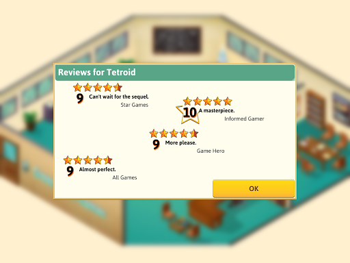 As you successfully release games, you'll get the chance to move into your own office and create an incredible team of developers. Recruit and train your staff and unlock new options that will advance your dreams.