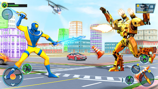In this amazing superhero game, go on rescue missions against real gangsters at a brisk speed. Prepare for a superhero rescue mission by playing the huge police robot speed hero city cop robot game. In this magnificent police superhero game, you can play as a speed robot superhero and go with super speed. The cop robot hero's attack speed should be faster than in rescue simulators and light speed hero games. In the superhero game, people put their faith in the big robot superhero to save them from the ruthless gangster mafia. They truly believe that in a superhero game, a light-speed robot can save them from actual gangsters. The city's life is in jeopardy, thus an eager speed robot for city rescue is required.