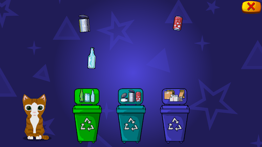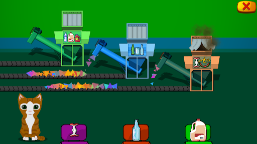 Children have to sort out waste into the right bins and earn coins for this. They can be spent on arranging a cat's house, as well as to open bonuses - soft toys.