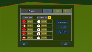 Practice mode, team play game, game with A.I