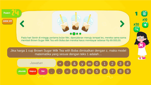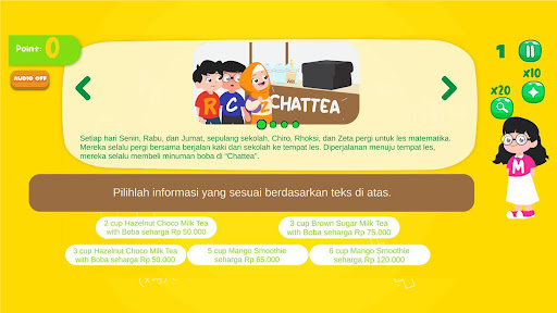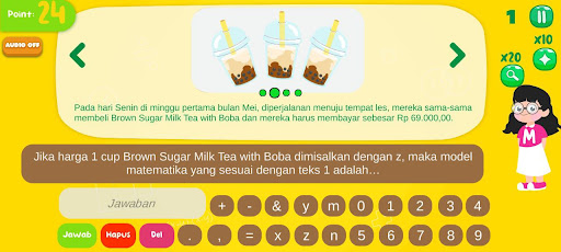 Pemain dapat menjawab pertanyaan yang ada dengan pilihan yang diberikan, jika jawaban pemain benar maka akan mendapatkan poin yang dapat digunakan untuk mendapatkan bantuan / hint. Game GEMASAMAT ini dapat dimainkan di multiplatform yaitu mobile dan desktop. Game GEMASAMAT ini akan menggunakan style gambar 2 dimensi yang menarik dan lucu bagi anak anak