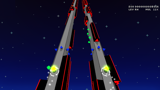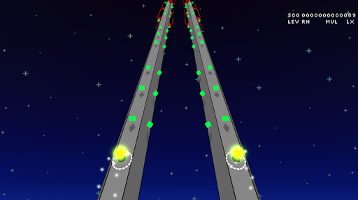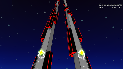 Gemini is a racing game that features not one but two simultaneous courses. The rules of Gemini are simple: don’t crash in either lane. The longer you last, the more points you get. If you have the time to spare, you can maneuver to other lanes to collect coins that boost your point multiplier, allowing you to potentially get more points even if you die earlier.