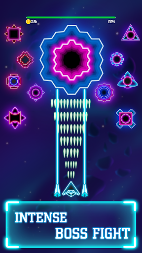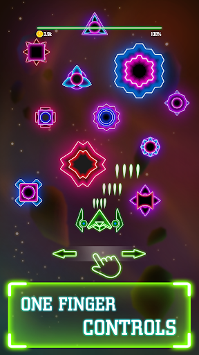 Neon style geometry shooter with wonderful effectsGeometric Shooter Features:- Game free to play- 100% offline no internet needed- Endless games are addictive- Slide control left and right- Stunning graphics and refined sound quality.