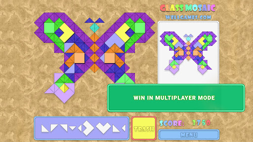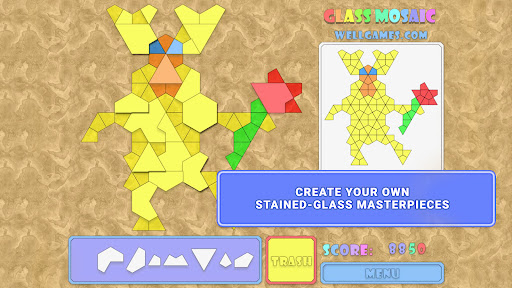 An artist lives in everyone! Each puzzle consists of a colored grid of different shapes. Your task is to use variously shaped glass shards fitting them on the proper places of a pattern. Get rid of useless pieces using Trash Box. You win if the picture is completed faster than your opponent's one. Traditionally, as you progress, solving levels becomes much harder. Get tons of great mosaic puzzles to complete, new shapes and patterns in the game Glass Mosaic: Jigsaw Puzzle. Experience world mosaics online taking your place among the greatest mosaic artists.