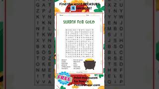 Gold Word Search-Find TREASURE #wordsearch #wordgames #puzzlegame #luck #stpatricksday #potofgoldPuzzle Cheer