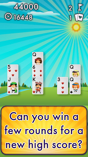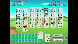 The game is quite easy to understand and straightforward, with simple instructions provided. The objective is to clear the golf course of cards before the deck is depleted by matching cards that are either one number higher or lower than your current card. When caught in a tough situation, wild cards can come in handy. For extra mega points, clear the top line of cards, and play numerous rounds to hit a high score!