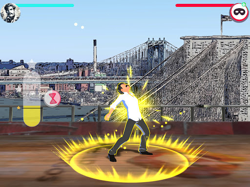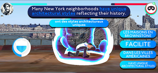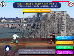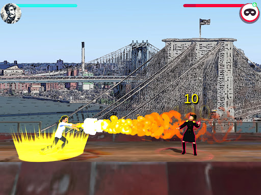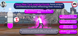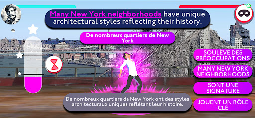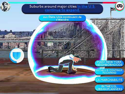 Aboard your flying ship you sail over Manhattan to beat enemies with your language skills. The more enemies you defeat the more English you learn.