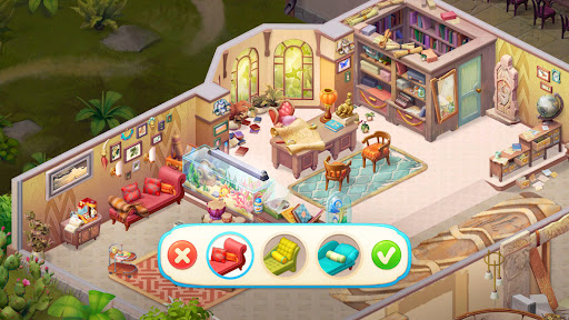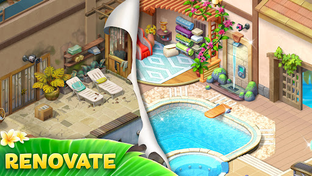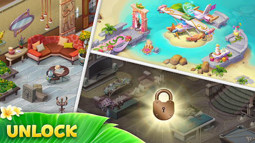 With incredible boosters and power-up combos at your disposal, your home designer dreams come true in no time, thanks to hundreds of fantastic and colorful options. Get creative in designing your unique and stylish tropical manor, and unlock all the mansion's areas to renovate, design, and develop!