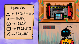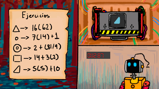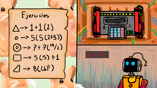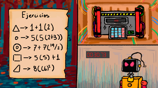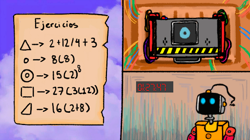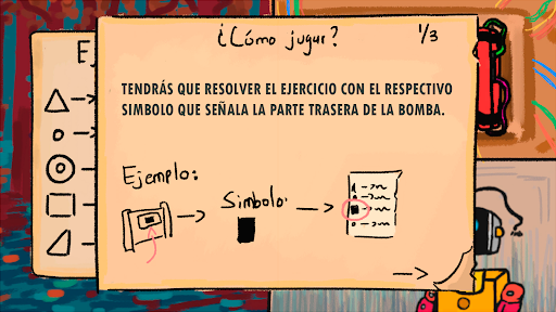 Interactive game in Spanish where you have limited time to help Atron deactivate a small bomb that could deactivate his circuits.