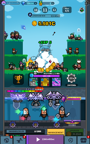 Dispatch your heroes from the factories to hunt epic enemies down and earn plenty of golds to become a rich enough to expand your hero production lines.
