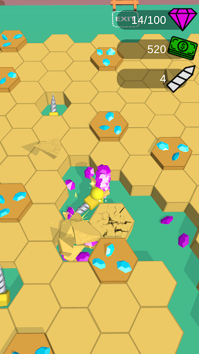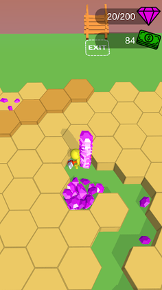 Smash the hexagon rocks, collect gems, upgrade yourself and find the exit!