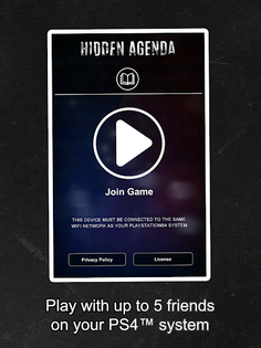 Please note: This app acts as a controller. PS4™ system, the Hidden Agenda game, and the Hidden Agenda Companion App required to play. PS4™ system and the Hidden Agenda game for the PS4™ system sold separately.