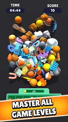 - Just tap to pick the 3D items into the box. Three same items would be matched and you win a star. Collect all the objects as fast as possible.