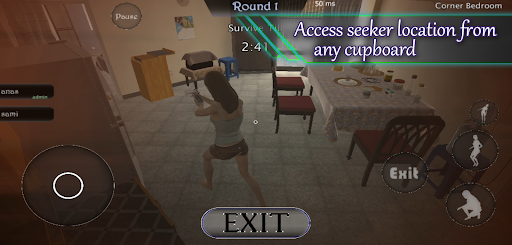 This a hide and seek which occurs in the apartment of few rooms. Each room contains cupboard, desk, tables and chair. The environment of the game is interactable. Player can interact with doors, cupboards and moving things.