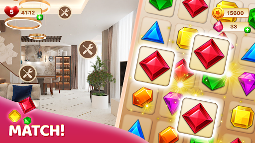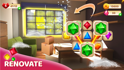 Enjoy beating fun and addictive match 3 puzzle to win coins! Complete the matching levels to renovate all kinds of rooms including a backyard, a balcony, and even pools! Live a captivating story full of vivid characters. You will be approached by the first client with an order for decor. Will things go as smoothly as expected? From warm-hearted neighbors and old friends to greedy businessmen, interact with everyone and experience both the happy and bitter moments of life.