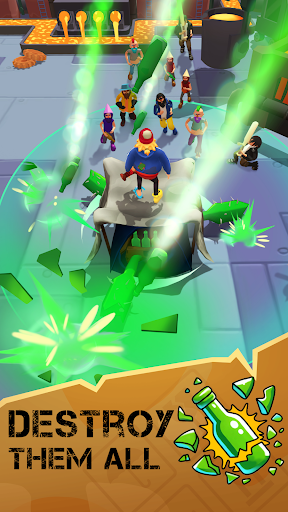 As you progress through increasingly challenging levels, you'll face diverse enemy gangs, each with their own strengths and weaknesses. Between levels upgrade your stats and unlock powerful perks that enhance your abilities. Whether it’s boosting your bottle-launching speed, increasing the power of your throws, or gaining special skills, every choice you make will shape your strategy.