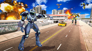 Explore & entertain yourself with robot car transforming and futuristic wars in this bee robot car game. Monster robot attack and creates destruction in city battle and starts to injure the peoples in future bee bot transform game. In ultimate robo war game with bee robot transformation and fight against monster robots by using robotic superpowers. In flying bee robot transforming game monster robot helicopters gives you an opportunity to transform robots to fight jet robot battle as the top cop with warrior robot.