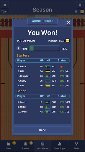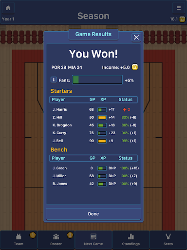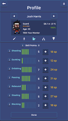 Hoop League Tactics lets you manage your basketball team, draft prospects, improve skills, simulate games, and win championships.