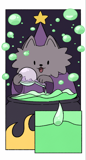 Suddenly, the wizard cat got up and headed to the closet. He opened the door with a quick flick of his paw, and used a potion in his cauldron.... suddenly a big cloud of smoke came out!