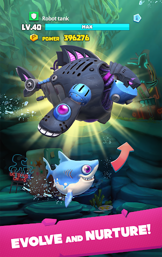 In this sequel to Hungry Shark, you will experience brand new adventures. Set in the mysterious deep ocean, you can create a dream reef where your unique sharks can breed and evolve. Choose your best ones to join in fast-paced, real-time PvP battles with quick-witted strategy. Get ready to explore worldwide ocean territories and unlock rare, powerful sharks!