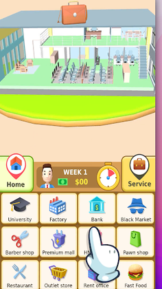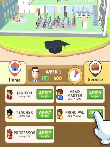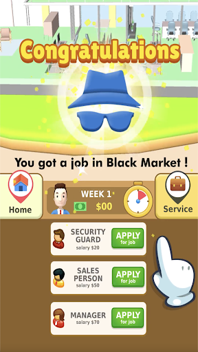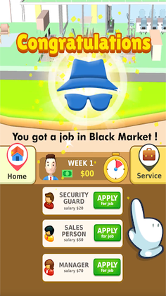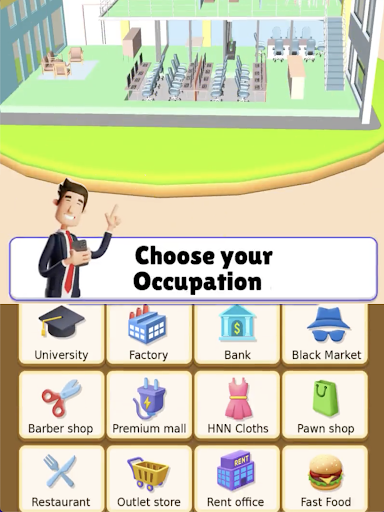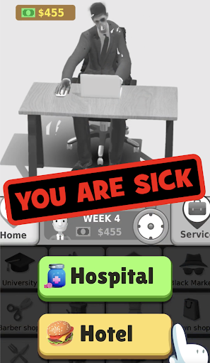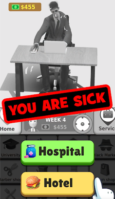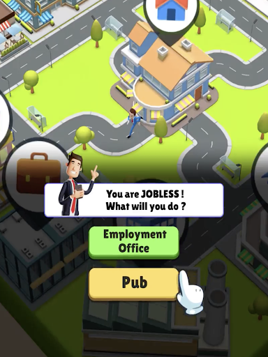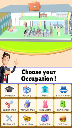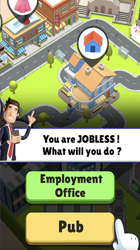 In Hyper Life , you start as a jobless person and then climb your way up with proper education ,healthy life and correct decision making !