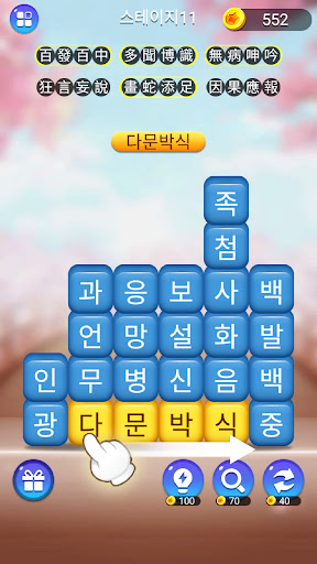 Smoothly connect blocks to form common four-character idioms using intuitive swipe controls optimized for enjoyable word gaming. Feel satisfied as the blocks disappear when you successfully create an idiom in these amusing word games.