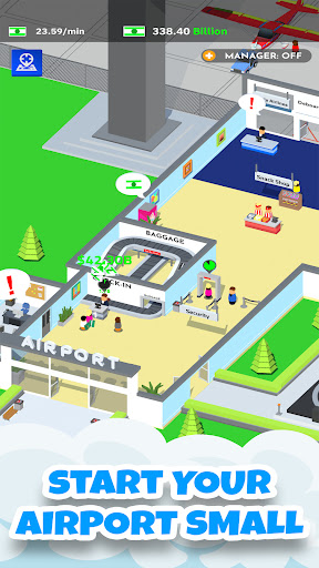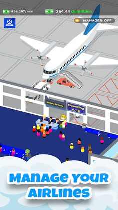 Grow from a small Airport to an International one! Offer the most luxurious planes, shops, lounges, and experiences. Invest into your Airlines to increase your profit and make them world renowned! Keep your Airport moving or ruin your customers vacation and wreck your reputation. Keep your seatbelt on because we're about to take flight!