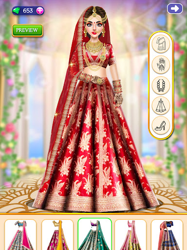 Indian Bridal Makeup & Dressup is among the most beautiful offline fashion and dress-up games for girls. If you aspire to become a fashion designer or a fashion stylist, you will absolutely love playing this traditional wedding game and participating in fashion competitions. Best Indian wedding becomes royal wedding when Indian bride outfit, dress up and makeup is used by a Fashion designer wedding games. Get the super wedding look with adorable looks by wedding stylist from around the fashion dress up world to makeover look royal Indian bride wedding make up with stylist princess makeover dress up games