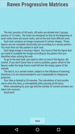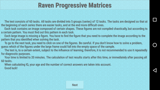 IQ test "Raven's Progressive Matrices (Standart)" for people 8yo and older...
