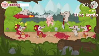 As a pork ninja fighter, you can swipe at breakneck speeds to dodge under rocket wolves and dodge swinging wrecking balls! Your one finger punch attacks are powerful enough to knock back any enemies standing in your path. Additionally, you can use your kung fu moves to deflect projectile attacks back towards your enemies. The wolves carry powerful weapons such as swords and chainsaws, so you must be ready to snatch them up and turn them against their owners.