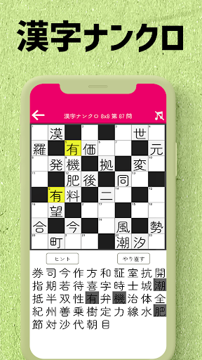 This app contains number of Japanese crossword quizes and Kanji Nankuro (number crossword quizes using kanji) quizes.