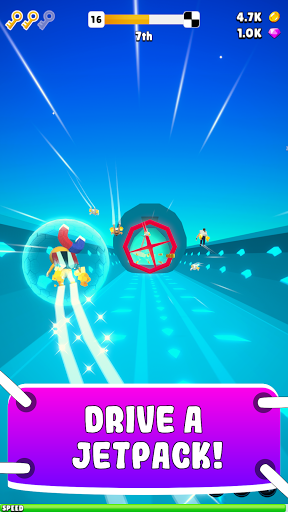 You are brand new racer in futuristic world, where racers use jet to fly. In jetpack games you going to challenge heroes from different universes. Only first place racer receives coins, respect and can show his winner dance.