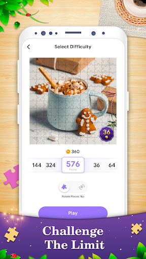 · From 12 to 280 puzzle pieces. The more pieces, the harder your jigsaw puzzle game becomes.Play with your own pace: Make the jigsaw as simple/hard as you want.