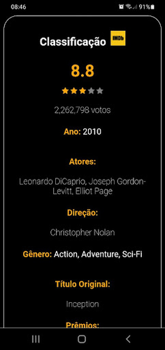 Filmes (Possui banner e as informações completas sobre os filmes);