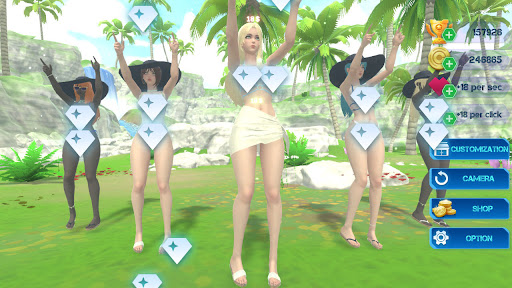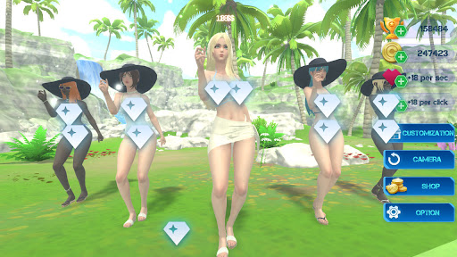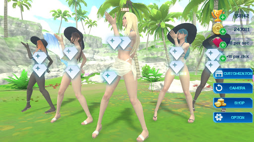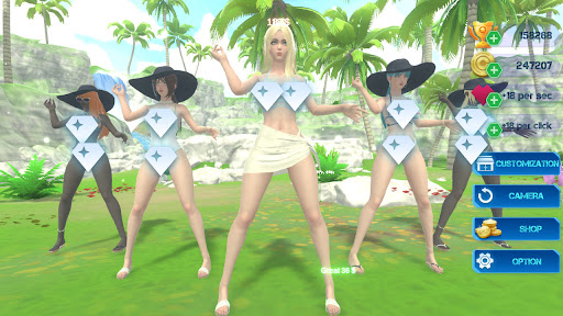 Collect crystals to earn money. Improve the click when collecting crystals, passive income, unlock all customizations of girls. The score increases when collecting crystals and from passive income.