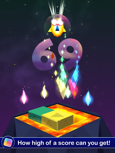 Picture a platform with four colored squares. Now put that platform on top of a volcano, floating on lava. Then add in a bouncing ball. Then, panic!